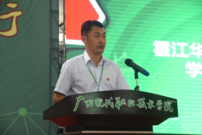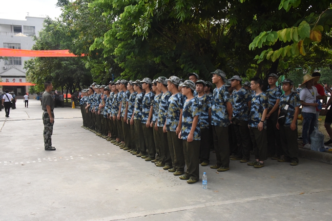 机电工程系17机修2+3班学生韦选桦代表参训学生领誓;承训教官代表黄恩先宣誓。
