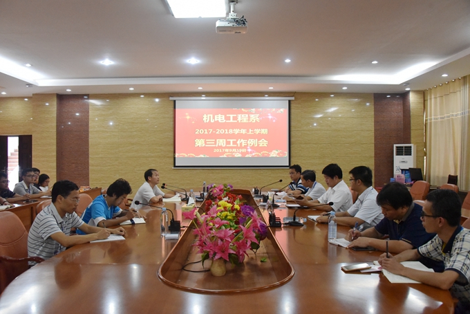 又讯 9月19日下午,学院党委书记韦伟松参加机电工程系2017—2018学年度上学期第三周工作例会。