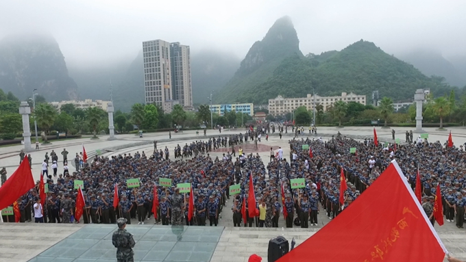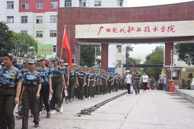 上午7时30分,全体师生在操场集中,举行军训外出拉练动员会,院长黄绍光宣布:广西现代职业技术学院军训外出拉练活动正式开始!