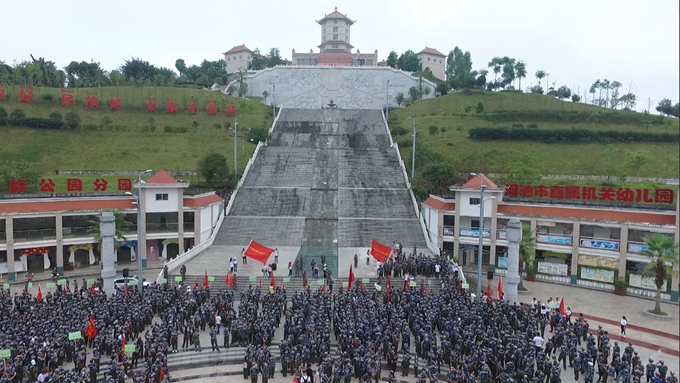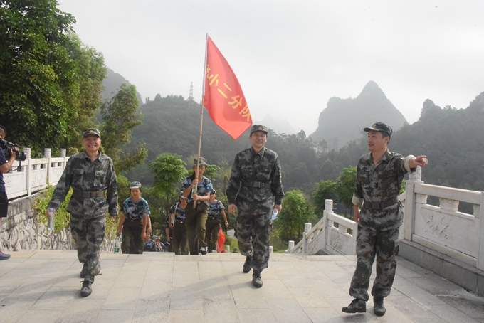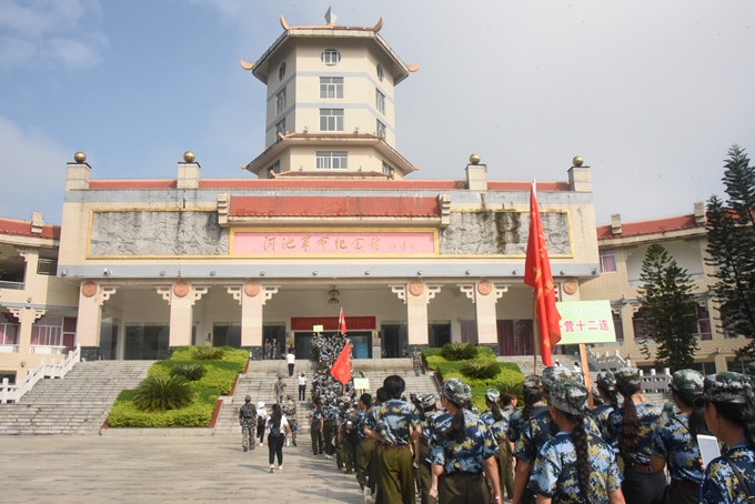 在途经新建西路、城西大道等路段后,师生们到达休整地民族公园。在民族公园,师生们共同参观了河池革命纪念馆,各营分别对学生进行爱国主义教育活动,培养学生的集体荣誉感,增强凝聚力。