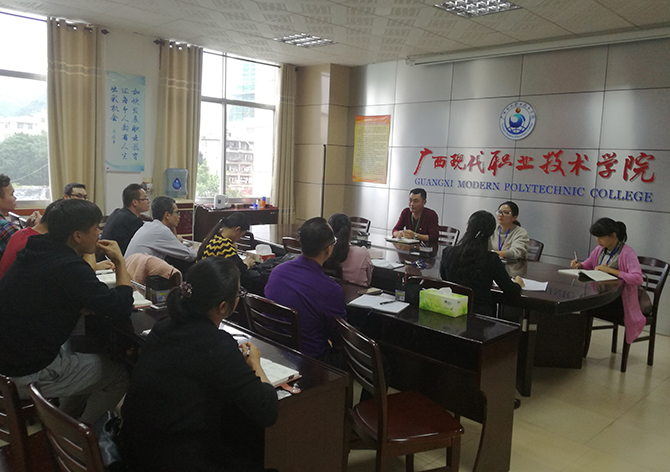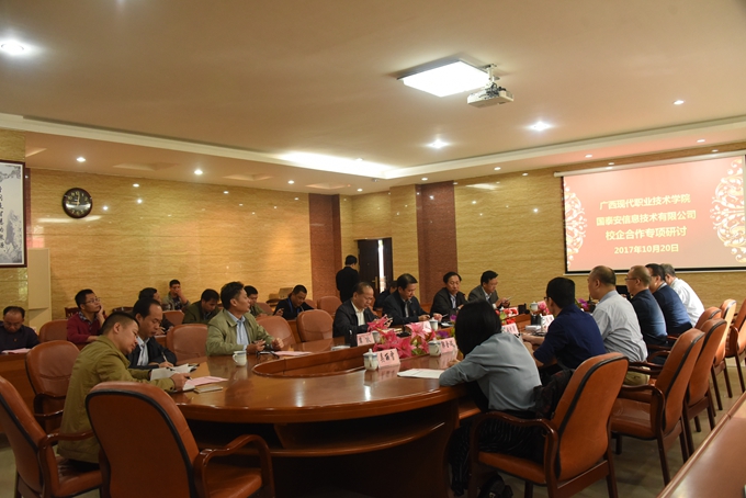 10月20日,国泰安教育股份有限公司中南区总经理庞伟一行7人到我院就校企合作项目进行深度调研,研讨会在学院图书馆会议室召开。学院院长黄绍光,市职业教育中心学校副校长唐启焕出席会议。学院各相关系部负责人参加会议。会议由学院副院长韦胜东主持。