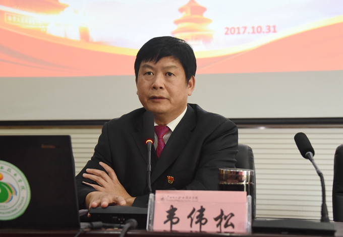 韦伟松指出,党的十九大是在全面建成小康社会决胜阶段、中国特色社会主义进入新时代的关键时期召开的一次十分重要的大会,也是党领导人民开启全面建成小康社会与现代化国家新征程的一次大会,是党团结带领全国各族人民奋力夺取新时代中国特色社会主义伟大胜利、实现中华民族伟大复兴的重大时代标志。党章修正案全面总结了以习近平同志为核心的党中央坚持加强党的领导,全面从严治党的新鲜经验,充分体现了党的十九大确立的重大理论观点和战略思想,对于新时代坚持和发展中国特色社会主义,对于全面加强党的建设,永葆党的先进性和纯洁性,都具有重大意义。特别是将习近平新时代中国特色社会主义思想写入党章,实现了党的指导思想与时俱进,反映了历史必然、时代所需、全党共识、民心所向,对于在新的历史起点上建设伟大工程、推进伟大事业、实现伟大梦想,具有重大实践意义和深远历史意义。韦伟松表示,党的十九大突出“新”这一特点:中国特色社会主义进入新时代,取得新成绩,开启新征程,形成新思想,指导新实践,这些新变化是对党的理论和实践的继承和发展,既坚持一脉相承又注重与时俱进。