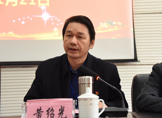 学院党委副书记、副院长霍江华在会上传达学习党的十九大精神,以及桂党高工〔2017〕11号《关于全区教育系统认真学习宣传贯彻党的十九大精神的通知》文件精神。