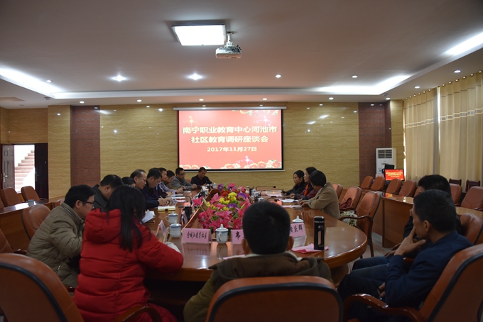 河池市职业教育中心学校、河池卫生学校、河池市技工学校及各个社区负责人也分别就社区教育工作的开展情况进行了汇报。与会人员还就社区教育开展的形式及遇到的问题和困难进行深入探讨。
