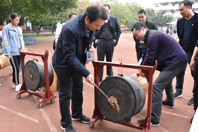 11月28日下午,学院院长黄绍光、党委副书记霍江华、纪委书记冉景峰到运动场检查指导民族文化进校园活动开展情况。学院各系部负责人、团委、宣传部、体育部等相关部门负责人陪同检查。