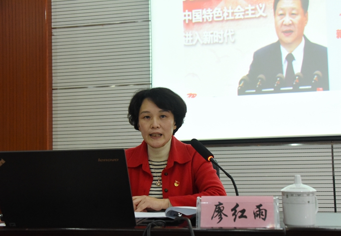 在宣讲会上,廖红雨结合河池改革发展实际,紧扣党的十九大报告,理论联系实际,用通俗易懂的语言和形象生动的实例、结合微视频展播,从“新时代:历史方位总判断”、“新使命:新时代的历史使命”、“新思想:新时代的指导思想”、“新征程:新时代新谋划”等四个方面全面阐述了党的十九大主题、重要成果、主要精神和历史奉献,突出强调学懂、弄通,做实党的十九大精神。