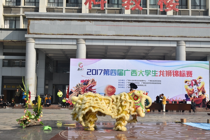 为进一步弘扬中华传统文化,推动广西大学生舞龙舞狮运动的发展,促进广西各高校之间的传统体育文化交流,搭建大学生舞龙舞狮爱好者交流平台,增进大学生之间的友谊,12月24日,2017年第四届广西大学生龙狮锦标赛在广西科技师范学院隆重举行。