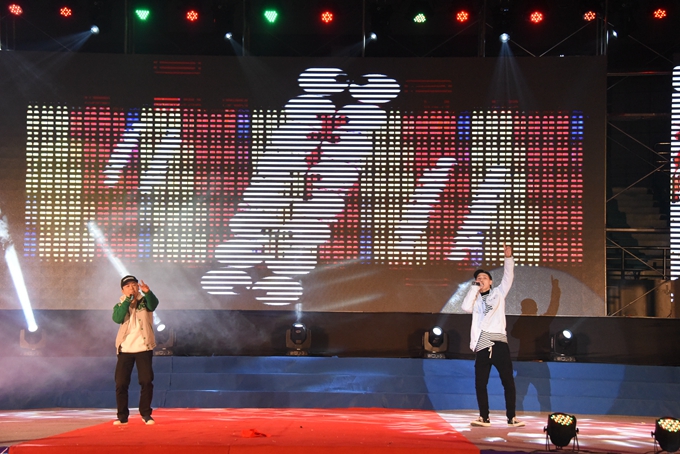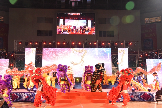 整台晚会形式多样,内容丰富。国家级非物质文化遗产展示《瑶乡鼓韵》拉开了晚会的序幕。而由我院龙狮艺术团带来的龙狮表演《中国龙》,令整个舞台耳目一新,带来强大的冲击感。我院一直注重民族文化进校园建设,由师生们创作的《蚂拐歌舞表演》充分展示了河池非物质文化遗产——壮族蚂拐文化独特的民族魅力和文化内涵。舞蹈《就现在》、三句半《校园新貌》、歌舞表演《国家》、彩调剧《刘三姐》、舞蹈《壮锦献给毛主席》等节目,充分展现了学院学生的青春风采和精神风貌,激发广大师生爱党、爱国、爱校和热爱艺术、勤奋学习、努力成才的热情与动力。