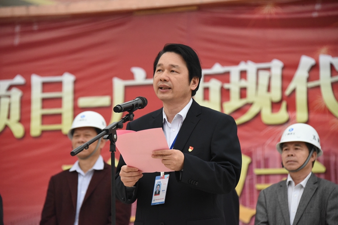 学院党委书记韦伟松宣布广西现代职业技术学院综合楼建设项目正式开工!仪式在阵阵掌声和礼炮声中圆满结束。