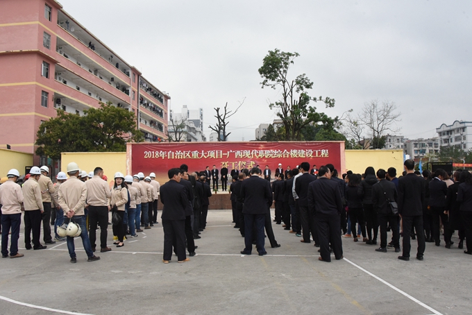 3月6日上午,我院综合楼建设工程开工仪式在学院舞台隆重举行。学院党委书记韦伟松、院长黄绍光、市职业教育中心学校党委书记黄丹峻、市教育局副局长韦联克,中国农业银行河池分行党委书记、行长秦一超,广西建工集团第五建筑工程有限责任公司总经理助理、南宁分公司党委书记、分公司经理杜福昌,学院党委副书记、副院长霍江华等领导出席仪式。学院全体中层领导干部、广西建工集团第五建筑工程有限责任公司有关人员参加仪式。仪式由副院长韦胜东主持。