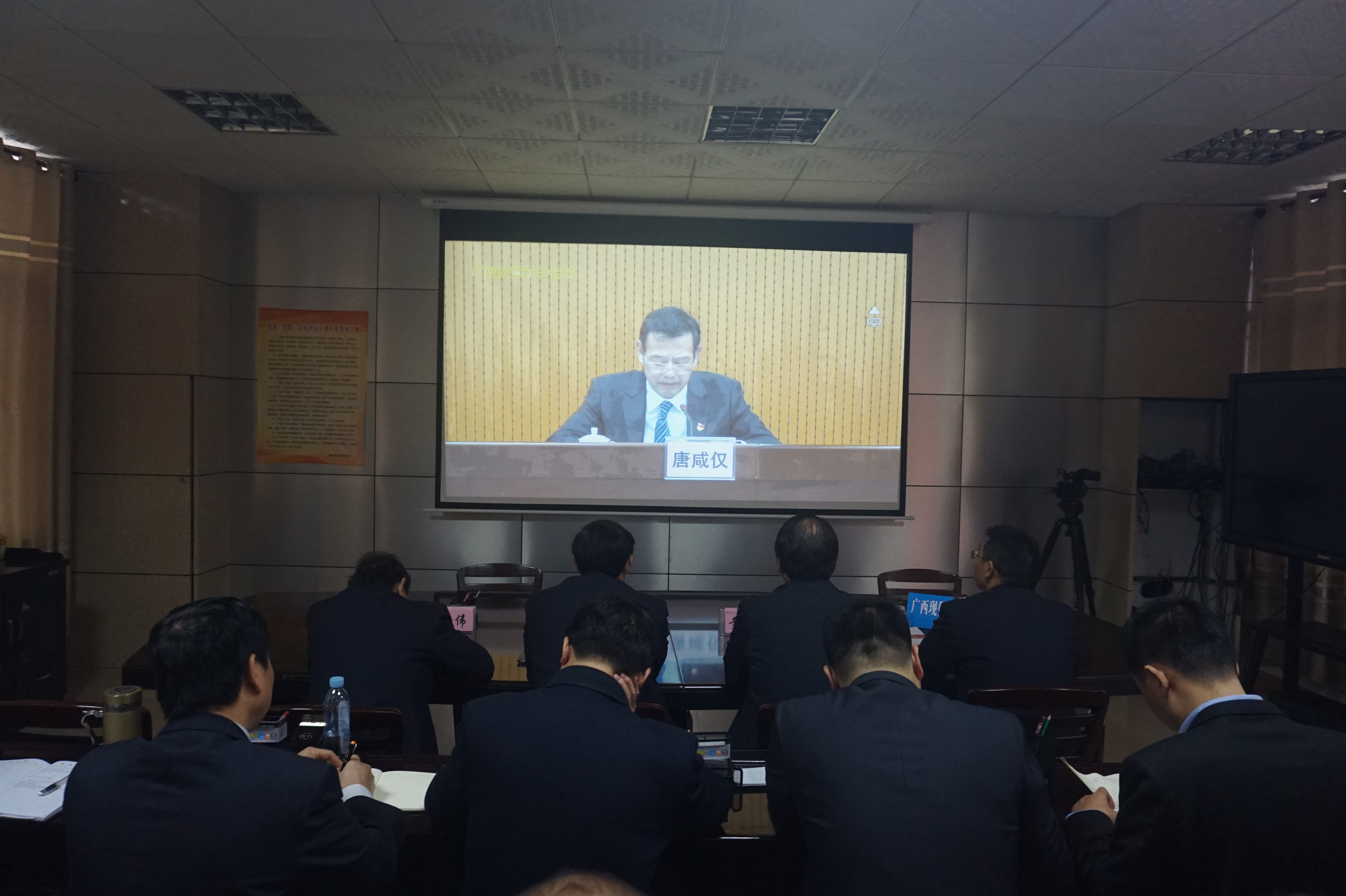 3月12日上午,2018年全区教育系统全面从严治党工作视频会议在自治区教育厅主会场召开,我院设分会场组织参加。院长黄绍光、副院长韦胜东、副院长冯忠伟、纪委书记冉景峰,以及学院各系部中层正职领导参加会议。
