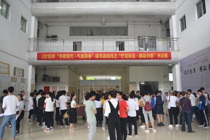 为进一步弘扬中华传统文化,推动校园文化建设,展示现代学子的学习风貌,我院第一届“芒花纷至 静品书香”书法展于5月8日下午在一号教学楼开幕。学院纪委书记冉景峰,各系部负责人,中国书法家协会会员、河池市书法家协会主席杨耀春,河池市群众艺术馆副馆长、河池市书法家协会秘书长朱昌辉等领导出席了开幕式。开幕式由学工处副处长李秀华主持。