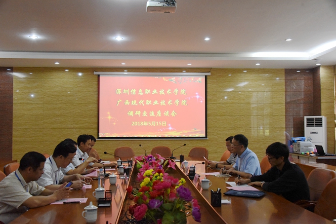 5月15日,深圳信息职业技术学院党委委员、副校长吴跃文带队一行3人到我院开展对口帮扶工作进行调研。学院党委副书记、副院长霍江华,副院长韦胜东及相关部门负责同志参加座谈会并陪同调研。