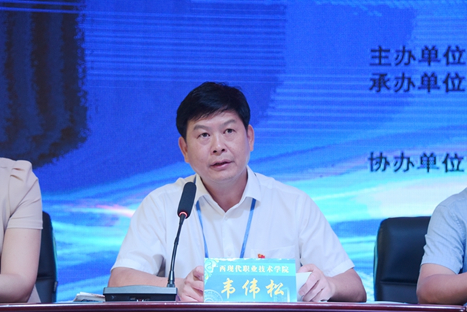 学院党委书记韦伟松在会上致辞。韦伟松介绍了河池市、我院和市职业教育中心学校的基本情况,并指出,这次会议在我院召开,对于在新形势下适应社会发展巨大变革,全面深化教学改革和创新发展,促进两校创品牌大发展必将产生积极而深远的影响。韦伟松表示,两校在取得优异成绩的同时,在做强做大、做特做优、打造品牌的道路上,将以这次研讨会为契机,把各项工作推上新台阶,以更好的成绩回报各级各部门的关心指导。