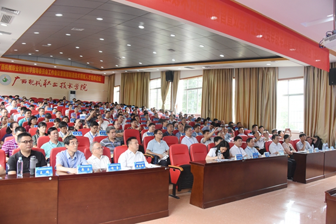 7月7日,2018年广西机械职业教育教学指导委员会(以下简称“广西机械行指委”)工作会议暨智能制造技术领域人才培养论坛在我院隆重召开。来自全国机械行业专家、职业院校单位代表,广西机械行指委委员单位代表、相关行业企业专家,以及我院和市职业教育中心学校两校领导、骨干教师等近300人参加会议。会议由广西机电职业技术学院院长赖晓桦主持。
