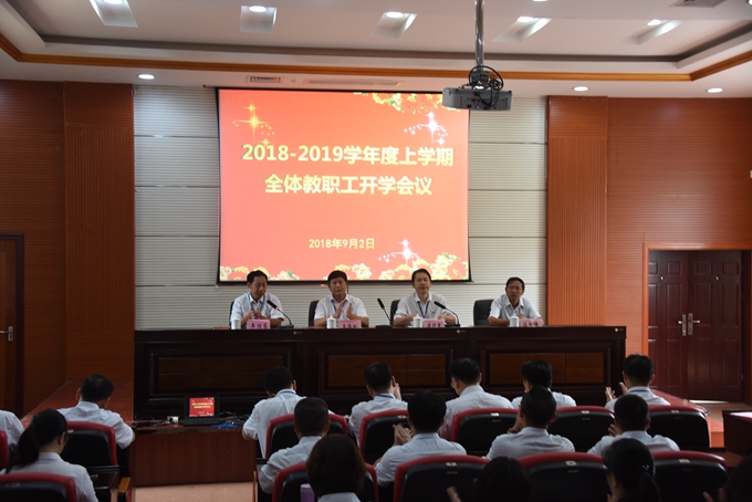 院长黄绍光传达自治区党委鹿心社书记在自治区教育厅的讲话精神。黄院长简要小结了上学期的工作,并对本学期重点工作进行部署:一要加强改进思政工作,强推“三全育人”工作;而要全面推进内部质量保证体系诊改工作;三要做好双高职院的申报工作;四要大力推进创新创业工作;五要提升教学管理工作水平;六要加强推进学生教育管理工作;七要扎实推进科研工作上台阶;八要加强校园文化建设工作;九要多措并举,深入推进人才队伍建设;十要强化校企合作,打造专业特色品牌。他强调,教职员工要坚持立德树人,坚持社会主义办学方向,保持勤勉高效的好作风,做好校园安全与稳定,师德师风、教风学风建设。希望大家能在新的学期、新的起点,创造新的辉煌。