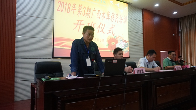 仪式上,南宁市隆安县移民刘如武代表学员发言。南宁市水利局陈奕栋代表领队发言,他感谢自治区水库移民管理局和广西现代职业技术学院为水库移民提供了培训机会,并希望全体学员都能珍惜此次机会,加强自我管理,注意安全,学有所成。