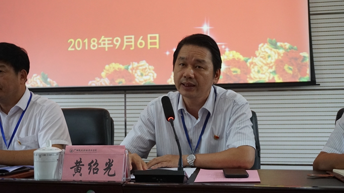 院长黄绍光在会上讲话。黄绍光充分肯定了我院教育工作所取得的优异成绩,并就今后的工作指出三点方向:一,坚固立德树人使命,队伍建设责任重大,弘扬高尚师德,潜心立德树人。二,以高度的危机感,面对严峻的发展形势。只有紧抓教师队伍建设的根本,把促进教师全面发展作为最重要的基础工作,才能争取发展机遇。三,抓住机遇,勇于担当,努力推进学院快速发展,建设一支高素质的四有教师队伍。希望广大教师在取得成绩的同时,自觉加强师德修养,提升教育教学工作,以先进模范为榜样,作出更大贡献。