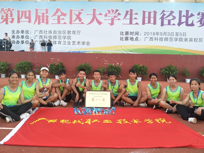 近日,由自治区教育厅主办、广西科技师范学院承办、广西学校体育卫生艺术学会协办的第四届全区大学生田径锦标赛在来宾举行,我院本次参赛学生11人,参赛项目并不多,但团体总分在高职高专组所有参赛队伍中排第八名并获奖。
