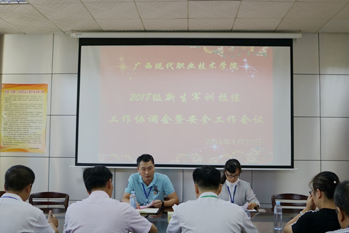 9月20日下午,我院在第一行政楼五楼会议室召开2018级新生军训拉练工作协调会暨安全工作会议。学院党委副书记、副院长霍江华出席会议。学工处、保卫处、宣传部等职能部门负责人以及各系部党总支书记参加会议。