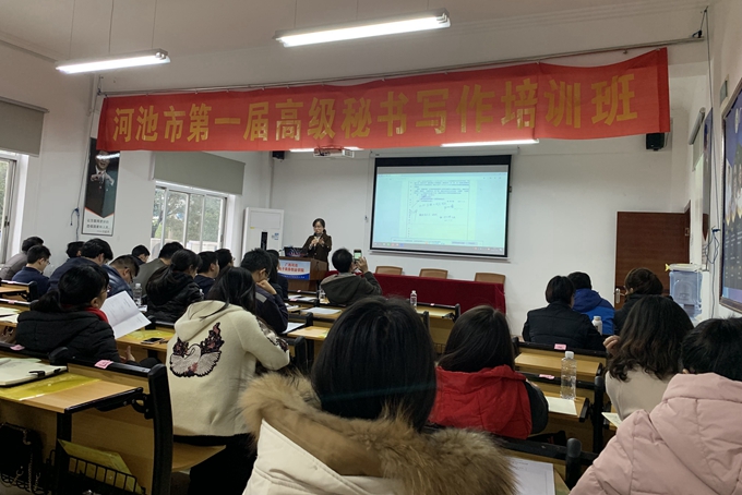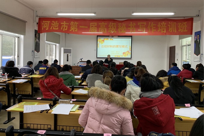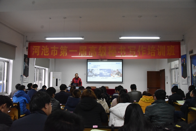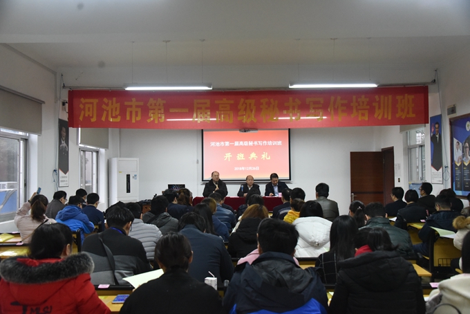 为进一步提升秘书队伍的业务能力,促进年轻干部更好更快地成长,12月26日-28日我院与河池市电业局共同举办了2018年高级秘书写作培训班。12月26日上午,培训班开班仪式在电商楼201培训中心召开,学院院长黄绍光,河池供电局局长杨家林出席开班仪式,我院与河池市电业局全体秘书参加开班仪式。仪式由学院院长助理、经管系主任杨奎主持。 开班仪式上,黄绍光院长简单介绍了我院的基本情况。他指出,全体秘书要紧紧围绕习近平总书记到中央办公厅调研视察时提出的“五个坚持”开展工作,他就贯彻“五个坚持”搞好“三服务”工作提出五点意见: 一要绝对忠诚,坚守信仰 ;自觉团结在党委周围,切实做到认识上一致、思想上统一、行动上同步。二要高度自觉,置身大局 ;三要极端负责对待工作 ;四要以“无怨无悔”诠释价值;五要廉洁自律,恪守本色。 河池供电局局长杨家林提出,开展此次培训是想通过短期的集中培训,研习应用文书的基本写作技能,进一步提高文秘人员的业务素质,提升机关部室的行政效能,更好地服务于单位企业的发展大局。他希望全体参加培训的同志,要提高思想认识,充分认识文稿写作的重要性;更要珍惜机会,思学进取,扎实掌握办公常见文书的写作方法。 此次培训为期三天,邀请了来自高校的资深导师,和来自市委政府“两办”和政研室的智囊专家,参加培训班的学员人数也多达60余人。