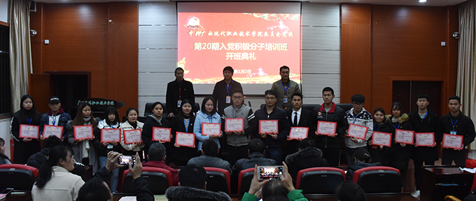 学院组织人事处处长潘华林首先宣读中共广西现代职业技术学院委员会党校关于授予蒋焱等26位同学为第十九期入党积极分子培训班“优秀学员”荣誉称号的决定。学院领导为优秀学员颁发了荣誉证书。