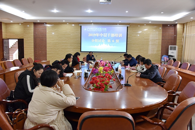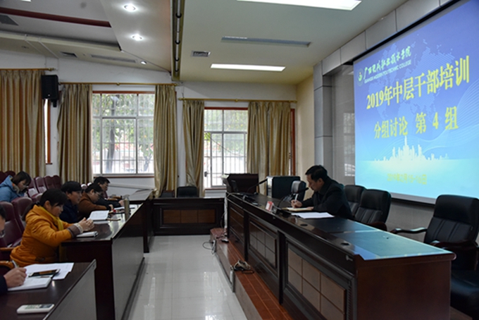 为进一步解放思想,转变作风,提升执行力,强推学院事业大发展,2月15日—16日,我院在第二学术报告厅举办2019年中层干部培训班。学院党委书记韦伟松、院长黄绍光,党委副书记、副院长霍江华,副院长韦胜东、纪委书记张斌、副院长冯忠伟出席。全体中层干部参加培训。 学院党委书记韦伟松作开班动员讲话。韦伟松指出,此次培训是学院开展为期两年的中层干部培训的第一站,学院将以铁手腕推进问题的整改,确保培训取得实效。韦伟松强调,各系各部门、全体中层干部要统一思想、高度齐心,认真剖析部门、个人当前制约学院发展的问题;要有信心、有定力,充分认识培训的必要性、重要性和紧迫性,拓展管理思路,加强创新能力,进一步推进学院精细化管理,提高工作质量和效率。 在开班仪式上,院长黄绍光介绍了延安整风运动的历史背景、历史过程和重要作用,介绍了中国共产党历史上的这场著名运动对推进“党的建设伟大工程”的深远影响,指出此次培训将按照延安整风运动的做法,以对教育事业、学院发展高度负责的态度,查找影响发展的关键问题所在,通过排查,达到找问题、知原因、增团结、明方向、促发展的目的。黄绍光强调,全体中层干部要以延安整风运动为启示,全面提升能力水平、服务能力,进一步强化责任与担当。 韩江河教授在开班仪式上作题为《中层干部是单位开创事业的中流砥柱》专题讲座。韩教授结合自身经历和经验阅历,提出中层干部要具备七个“力”:政治力、魄力、执行力、忍耐力、学习力、反省力和创新力,精彩讲座使参加培训的中层干部受益匪浅。