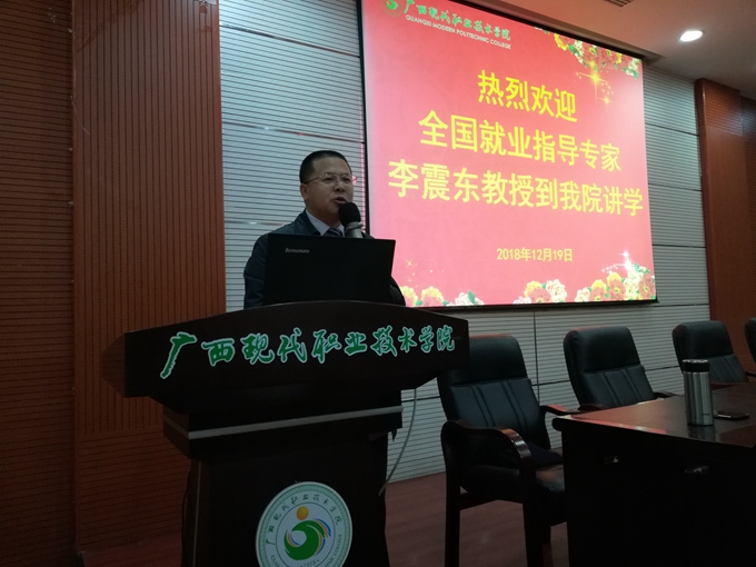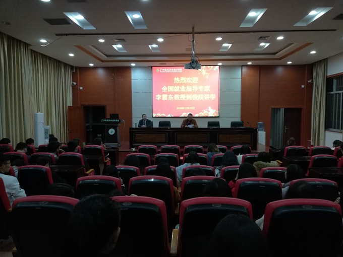 12月19日晚上,全国就业指导专家、中国大学生就业与创业高峰讲坛秘书长、伯马创业研究院院长、教育部高校师资培训交流中心特邀就业指导专家、第三届中国互联网+大学生创新创业大赛专家评委、人社部中国就业促进会公共就业服务专业委员会专家李震东应邀到我院作“求职技巧与创新”的高端就业指导专题讲座,指导2019届毕业生准确有效地确定就业方向和求职方面的各种技巧。就业处全体人员、学院200多名2019届学生代表和各系班主任参加了讲座。 李震东教授通过诙谐幽默的语言和极富感染的表达方式,从自身的求职创业经历谈起,并就大学生“如何面对严峻就业形势”、“如何开展就业指导”及“求职技巧各方面的技巧”等同学们关心的问题进行了精彩讲演。李教授希望希望毕业生们在求职应聘过程中要做好三个方面的准备:一是把求职当作一场求生的战斗;二是确定一个新时期铁饭碗的概念,改变以往错误的就业观念,要做的不是跟其他人比工作待遇,比职位高低,要和自己比赛,和过去的自己作告别;三是要学会“先做人,后做事”的基本道理。 讲座结束后,李教授与在座的学生们进行了互动,并耐心解答了同学们提出的问题,精彩的回答赢得了现场师生的阵阵掌声。