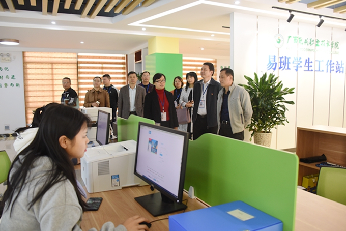 11月8日上午,我院在图书馆会议室召开2018年广西高校思想政治工作质量提升工程项目实地检查工作会议。由桂林理工大学副厅级调研员、教授张劲松为组长的2018年广西高校思想政治工作质量提升工程项目检查组到我院对“三全育人”相关工作进行检查指导。学院党委书记韦伟松、院长黄绍光、副院长韦胜东、南宁职业技术学院商学院原院长韩江河等领导出席会议。“三全育人”工作各项目组负责人、各系党总支书记、主任等参加会议。会议由院长黄绍光主持。 会上,与会人员观看了我院“三全育人”宣传片。张劲松组长表示,按照自治区教育厅有关要求,此行主要目的是为了检查我院“三全育人”各项目的进展情况、项目资金支出情况等。 学院党委书记韦伟松从“三全育人”工作的领导、激励保障措施、强化经费保障、主要工作亮点、存在问题和下一步工作打算等方面作学院“三全育人”工作情况汇报。韦伟松指出,通过“三全育人”工程项目的开展,全体教职工利用各种途径在各自岗位上开展育人工作已成为自觉;“三全育人”工作的实施推进,极大提高了学生满意度,也使学生综合素质得到很大提高,学院的社会影响力不断提升。下一步,学院将在全面扎实推进十一项育人工程的基础上,重点在德育核心团队建设、读书工程、育人教书、科研工作和“三全育人”的思想创新上实现重大突破。 听取汇报后,张劲松组长肯定了我院“三全育人”工作有成效、有亮点,主要体现在民族文化项目有特色、管理育人有实招、读书活动创新意。张劲松建议,下一步学院要在相关项目上再挖掘亮点、再发挥优势,整体推进“三全育人”工作深入有效推进。 汇报会结束后,检查组一行查阅了我院“三全育人”工作相关资料台账,实地检查了24小时图书馆、“马上办”服务中心、民族艺术(壮族蚂拐歌)传承创新职业教育基地、青年之家和易班工作站等。
