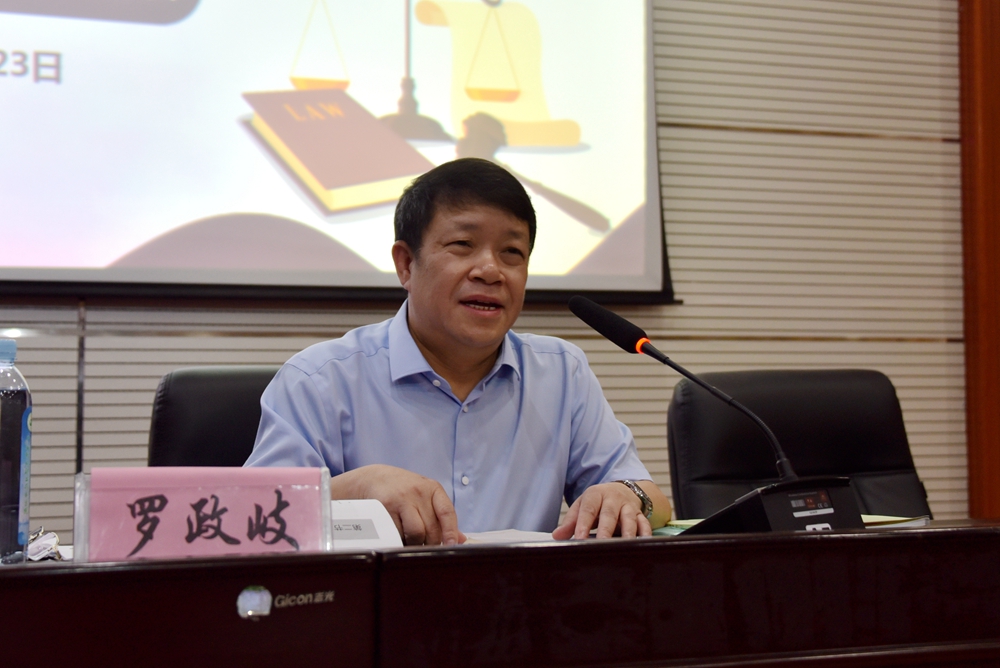 为进一步增强师生法制意识,提升学生知法、懂法、用法的能力,5月23日,我院邀请河池律师协会会长罗政岐律师在第二学术报告厅进行第六期现代大讲堂——以“头顶利剑高悬,心中警钟长鸣”为主题的法律知识讲座,学院院长黄绍光出席并主持讲座。