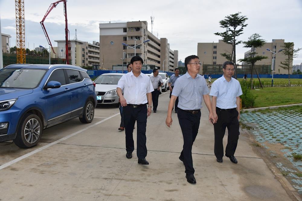 上图:北海职业学院林旺兴书记(中)陪同市府副秘书长潘扬权(右一)、学院党委书记韦伟松(左一)参观校园