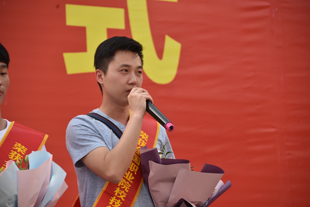 欢迎仪式上,学院院长黄绍光对英雄们表示衷心的祝贺,这是我院在国赛舞台上的第二个一等奖,是参赛师生辛苦付出的成果,希望其他同学能够以他们为榜样,加强技能学习,努力拼搏奋斗,不断努力,再创辉煌!