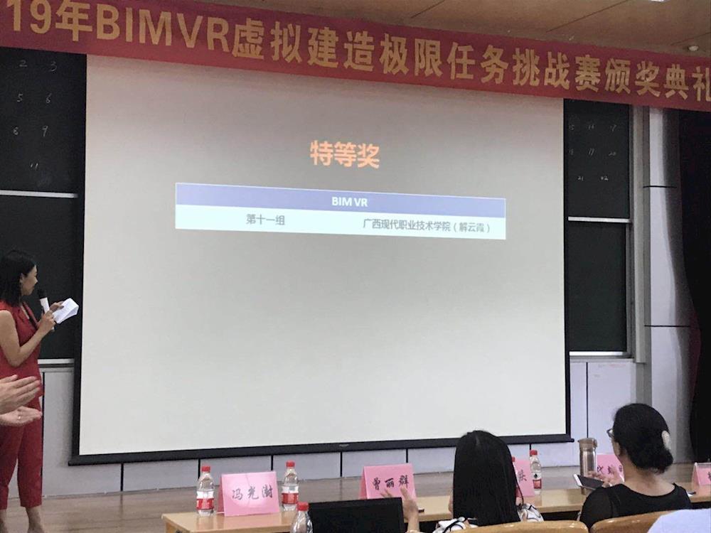 6月12-16日,由广西建筑职业教育教学指导委员会主办、广西科技大学承办的广西2019年“BIMVR”虚拟建造极限任务挑战赛在广西科技大学举行。此次比赛共有来自全区各本科院校、职业院校的23支队伍参赛。由我院建筑系解云霞老师和广西五建南宁分公司BIM中心陈少枫科长指导的学生罗旭升、凌永新、黄向前,经过5天的团结协作,在竞夺激烈的赛场上不畏挑战、顽强拼搏,最终以总分第一名的优异成绩斩获大赛特等奖,也实现了我院在此项赛事中特等奖的突破。