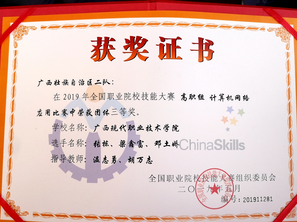 我院荣获2019年全国职业院校技能大赛“计算机网络应用”赛项三等奖