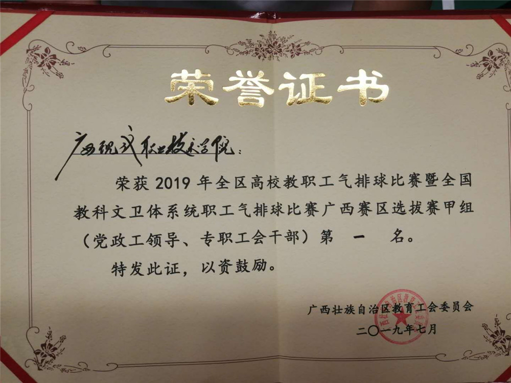 ——我院喜获2019年全区高校教职工气排球比赛暨全国教科文卫体系统职工气排球比赛广西赛区选拔赛冠军