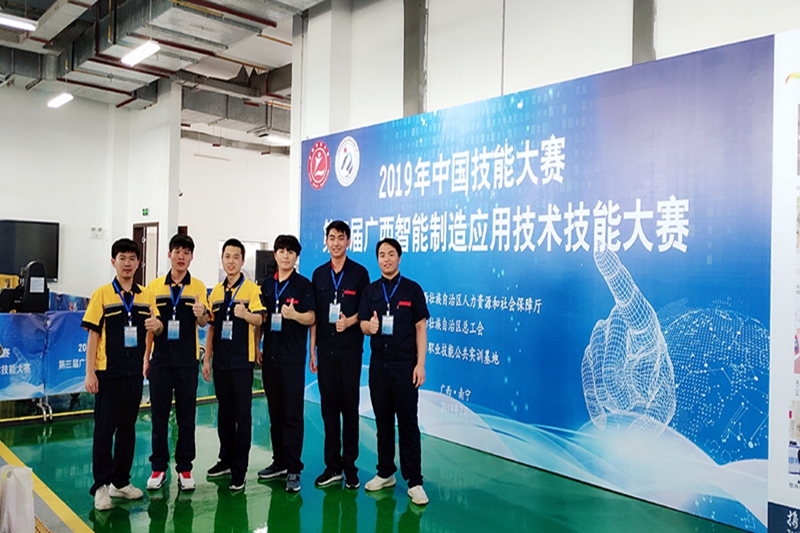 近日,第三届广西智能制造应用技术技能大赛决赛在南宁市举行,根据广西壮族自治区人力资源和社会保障厅广西壮族自治区总工会《关于公布第三届广西智能制造应用技术技能大赛决赛成绩的通知》,由我院韦韩、邱思维、黄林生老师组成的参赛队获“钳工(切削加工智能制造单元安装与调试)”赛项教师组一等奖第一名;由学生王俊宇、苏宏键、庞健海组成的参赛队获“钳工(切削加工智能制造单元安装与调试)”赛项学生组二等奖;学院党委书记韦伟松获“优秀教练”称号。