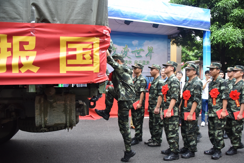 仪式上,韦胜东副院长宣读我院2019年在校应征入伍的学生名单,黄绍光院长给入伍学生颁发入伍通知书,学院领导给学生佩戴光荣花。