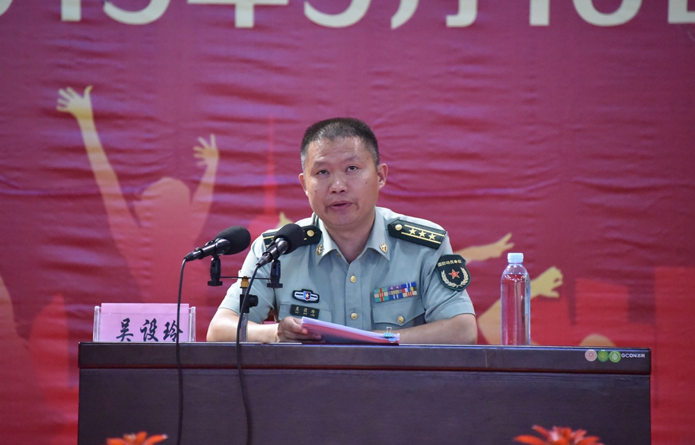 最后,河池军分区政治工作处吴设玲主任到我院开展《认清形势,居安思危,切实增强全民国防的责任担当》的国防教育课讲座。