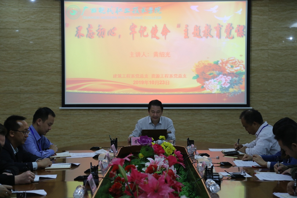 为扎实开展好“不忘初心 牢记使命”主题教育工作,根据学院党委的统一部署,10月23日晚,建筑工程系、资源工程系党总支在图书馆会议室召开了主题教育党课。本次党课由学院党委副书记、院长黄绍光同志作报告。建筑工程系、资源工程系党总支全体党员、入党积极分子参加党课,党课报告由建筑工程系党总支书记黄菁主持。