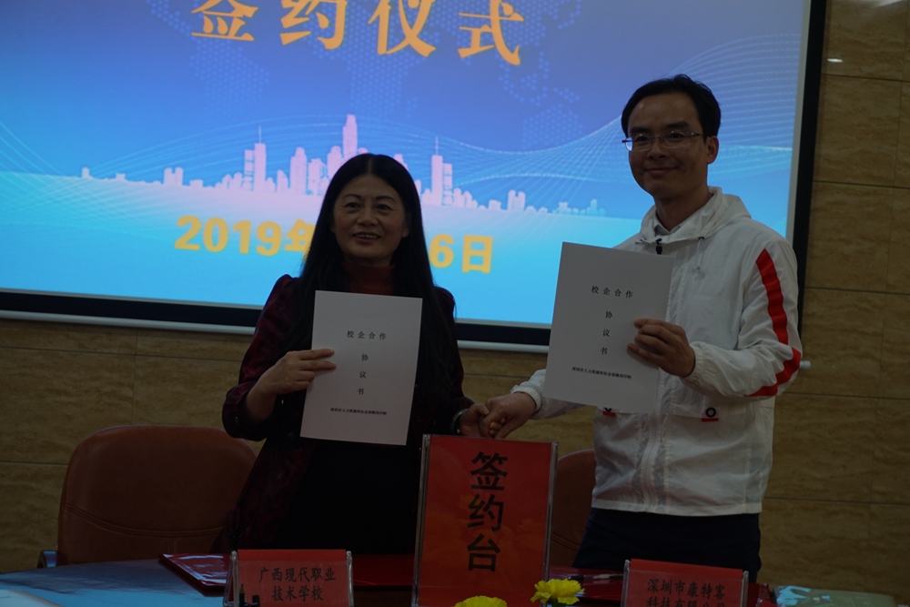 最后,学院院长黄绍光与深圳欣旺达股份有限工作签订校企合作协议、我院就业处处长俸嘉潞与深圳市康特客科技有限公司签订校企合作协议。多家河池市中高职院校与深圳市企业签署了初步合作协议。