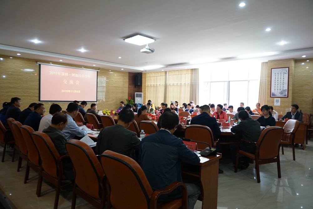 11月6日下午,2019年深圳·河池校企合作交流会在我院图书馆会议室举行。河池市委组织部副部长、市人力资源和社会保障局党组书记、局长莫晓明,河池市人力资源和社会保障局副局长范利群,深圳市人力资源和社会保障局二级巡视员许少英、深圳市人力资源和社会保障局就业处处长崔歧平、深圳市公共就业服务中心农工部部长黄长安出席会议。深圳、河池市各个相关部门领导,河池市15所中高职院校负责人,深圳、河池市20多家企业负责人参加座谈会。会议由河池市人力资源和社会保障局副局长范利群主持。