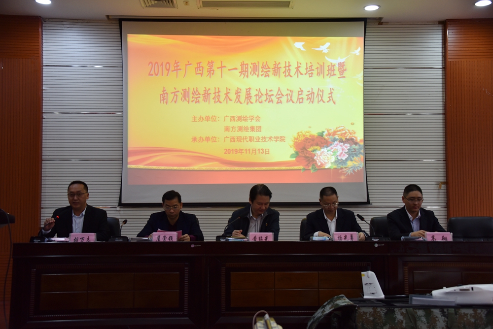 11月13日,2019年广西第十一期测绘新技术培训班暨南方测绘新技术发展论坛会议启动仪式在我院第二学术报告厅举行。学院院长黄绍光、南方测绘集团南宁分公司总经理杨光勇、河池市规划勘察测绘院院长崖崇领、南方测绘集团南宁分公司营销总监高翔出席会议,河池地区测绘单位及企业代表、南方测绘公司领导、建筑工程系领导及师生代表参加活动,仪式由建筑工程系主任胡万志主持。