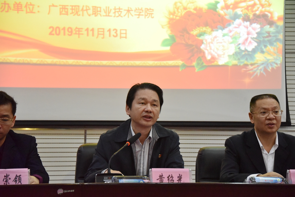 仪式上,黄绍光发表重要讲话,他代表学院全体师生向广西测绘协会和南方测绘集团的帮助和支持表示衷心的感谢,并介绍了我院的办学实力、近两年来技能竞赛获奖及学院发展情况。黄绍光表示,学院把产教融合和校企合作作为人才培养的重要模式,本次广西测绘新技术培训班暨南方测绘新技术发展论坛在学院举行,将深化校企合作、产教融合,促进我院不断改革创新,同时也是对学院承办能力的检验,我们一定把活动办好,办出特色,希望同学们更加努力学习专业知识,提高技能,充分利用这些高端测绘设备,更好地服务社会。