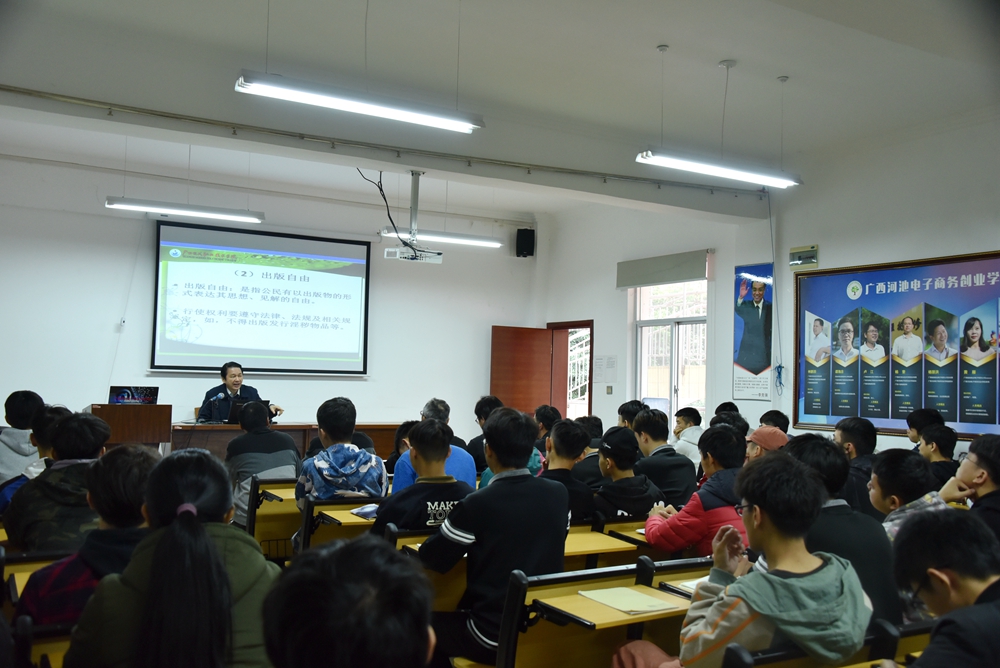 12月5日,学院院长黄绍光在电商楼201为建筑系、资源系的师生代表做“学宪法讲宪法活动”专题讲座。