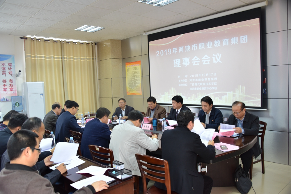 当天上午,河池市职业教育集团理事会在我院五楼会议室召开,会议审议部分成员单位、(常务)理事变更名单,并讨论了2020年集团工作要点。