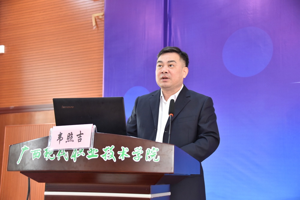 河池市政府副秘书长韦照吉致辞,他表示,河池职教集团成立以来,积极推进中高职办学,搭建人才成长立交桥,主动对接地方产业发展,先后组织职业院校对接河池产业园区推进产教融合发展,并发挥职业教育扶贫功能,对河池打赢脱贫攻坚战作出了应有的贡献。今年河池职业教育集团被认定为自治区示范性职教集团,在全区100多个职教集团中脱颖而出,这是职教集团各成员单位努力的结果。希望各成员单位一如既往关心和支持,在区域协调发展战略思维下,通过职教集团这个平台,积极探索集团化办学道路,扎实推进产教融合、校企合作等工作。为企业自身发展提供人力资源保障,为河池经济社会发展提供人才支撑。