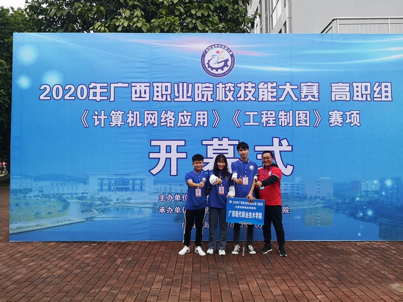 10月10日,2020年广西职业院校技能大赛“计算机网络应用”赛项(高职组)比赛在广西水利电力职业技术学院举行。我院计算机网络应用专业学生曹健玲、许益铭、曾国荣组成的参赛队在温志勇、胡万志两位老师的指导下,与来自全区21所高职院校的63名参赛选手同场竞技。经过激烈角逐,他们荣获该赛项团体一等奖,取得我院参加技能大赛的“开门红”,这也是我院参赛队再次获得该赛项一等奖。