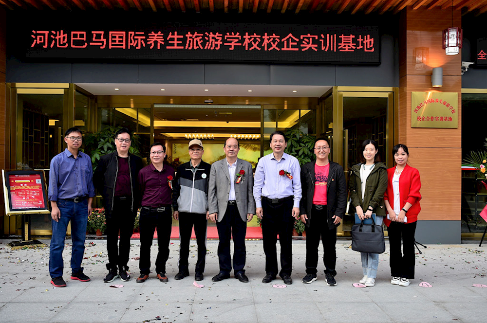 黄院长一行参观了巴马健康养生美食研发基地的大师工作坊、巴马国际健康养生美食展示馆,并参与了河池巴马国际旅游学校校企实训基地揭牌仪式,最后分别与巴马国际养生旅游学校和广西宏泰成建筑集团有限公司进行座谈。