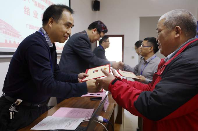 结业典礼上,韦文业书记宣读优秀学员表彰文件,与会领导为获奖学员颁奖。优秀学员韩建安、廖克坚依次进行发言,罗之尚主任作本次培训工作总结。