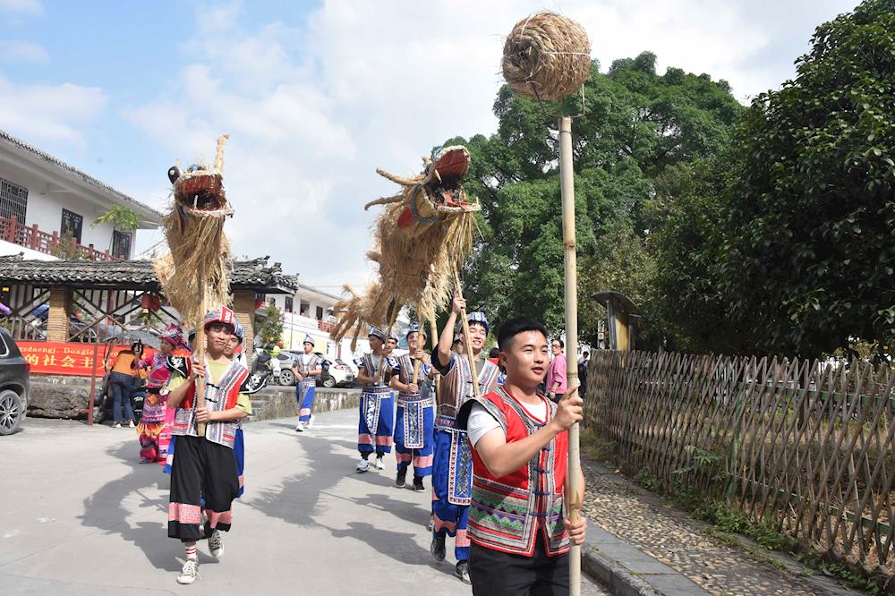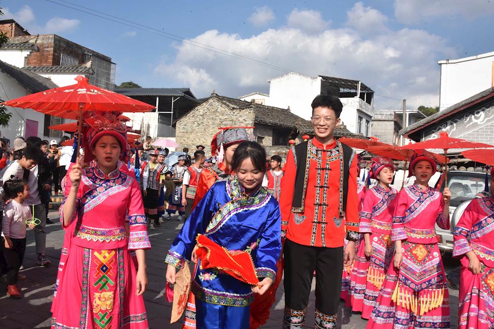 为继承和弘扬民族文化和区域民族文化精髓,进一步完善我院师生民族文化体系,培养师生爱祖国、爱家乡、民族团结的高尚品德,树立正确的人生观、道德观、价值观,使传统民族文化精髓内化于心、外化于行,11月21日上午,共青团河池市委副书记、广西现代职业技术学院建筑工程系党总支书记黄菁,带领我院师生一百余人到河池市罗城仫佬族自治县石围村,开展民族文化进校园“依饭节”活动。